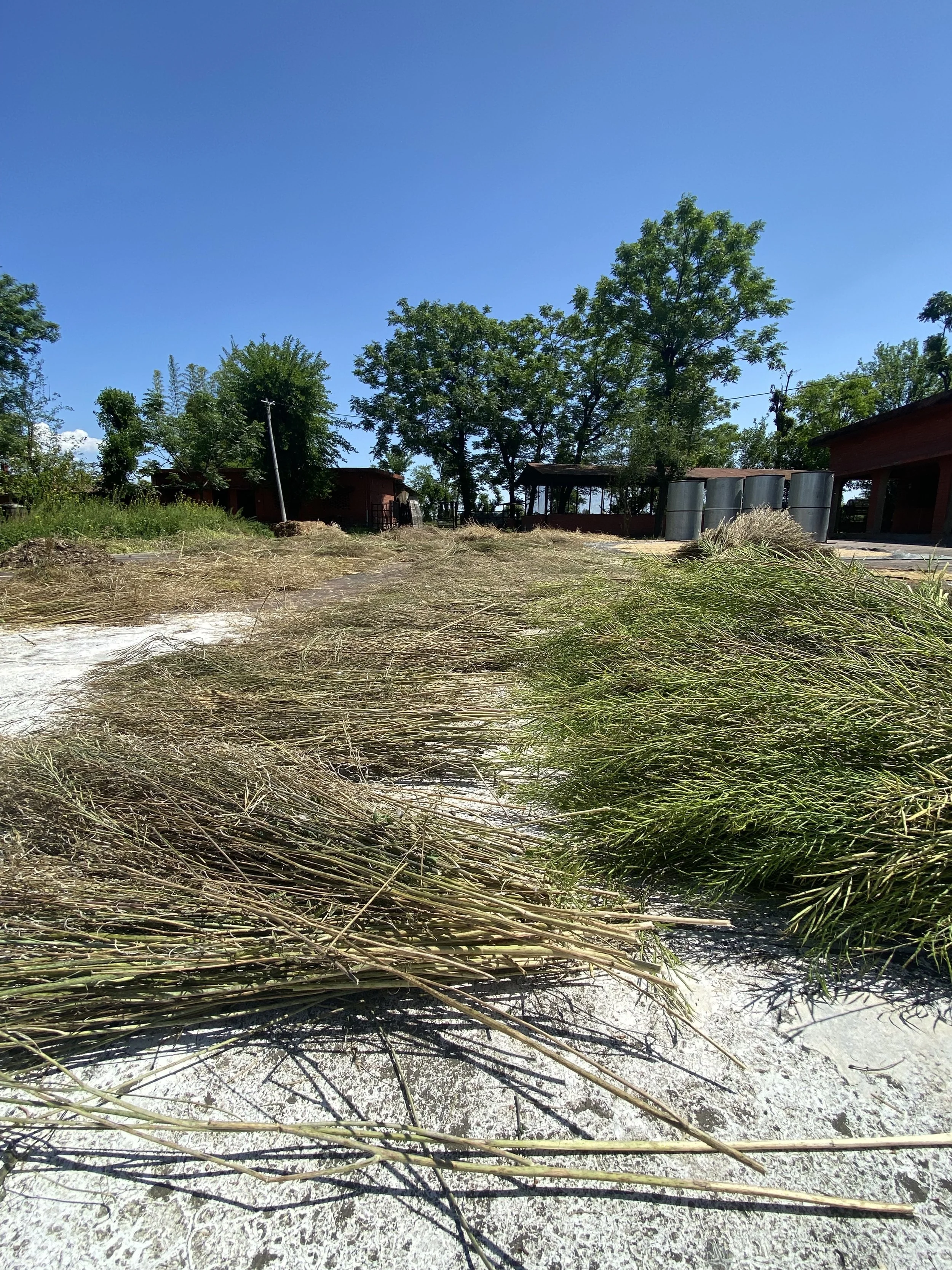 5. We gather all leftover plant material from threshing and sorting and again bundle it up to be fed to the cows!